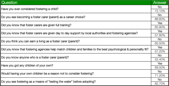 We decided to conduct a UK-wide survey to help both ourselves, and the local authorities we work with so that we may better understand the people we hope to recruit. We sent 10 questions to 200 men and women aged between 35 and 65 and the winning answer for each question is illustrated below: